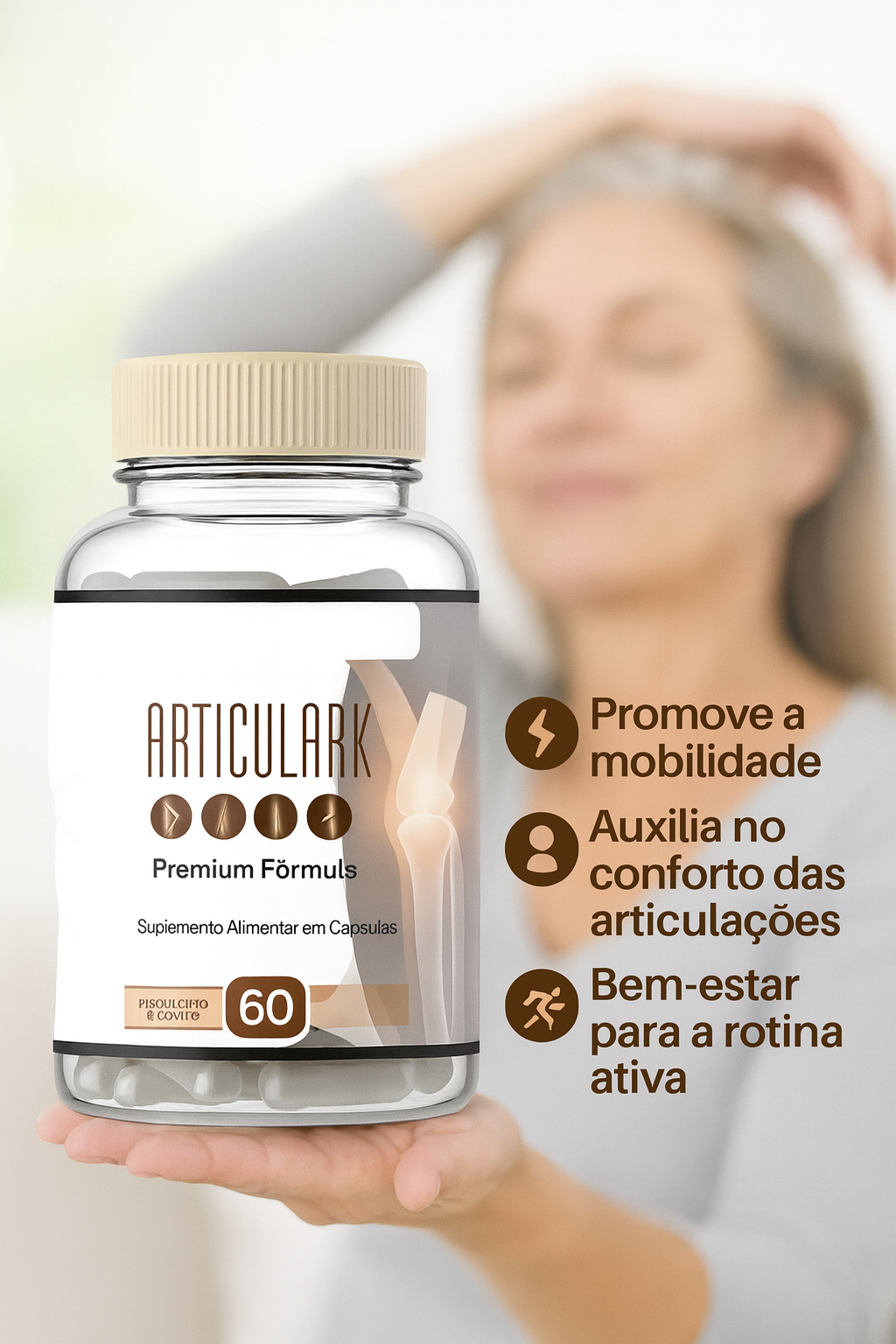 ✨ Formulado com ativos cuidadosamente selecionados, o Articulark foi pensado para quem deseja se manter ativo, com mais leveza e liberdade para realizar as atividades do dia a dia.